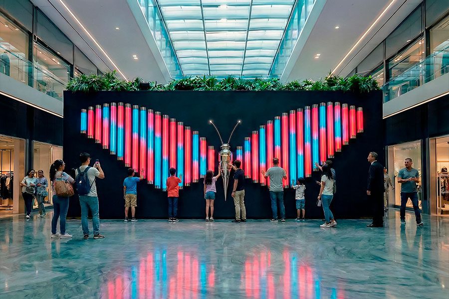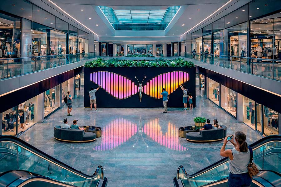 Within a shopping mall, “Butterfly” functions not just as décor, but as a strategic tool for shaping a premium visitor experience: a recognizable landmark, a photogenic stage for content creation, and a natural focal point for family leisure. The installation operates in two modes: