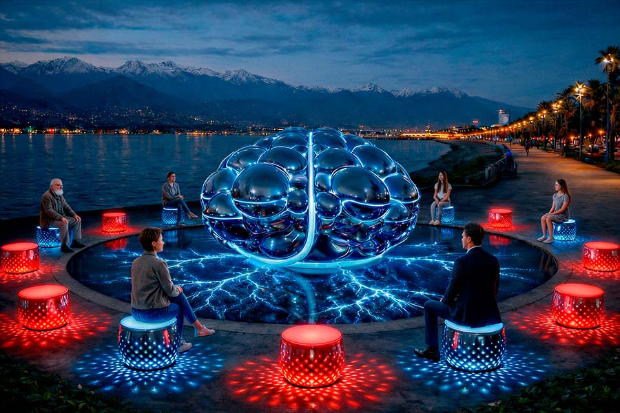 GLOBE MIND becomes a place for conscious intention. Not a casual monument, but a living symbol of the future linking cities and people. At the moment of connection — the seat ignites in the installation’s colors, a signal resonates, a neural pulse travels beneath the glass — the visitor formulates a wish and symbolically transmits it to the Global Mind. Light and sound acknowledge the act: the request is received; the impulse has entered the network. Over time, GLOBE MIND evolves into an urban tradition — a destination where people leave intention instead of coins; where wishes integrate into the global neural fabric of humanity — the energy behind ideas, meetings, and opportunities. People will say: “Let’s go to GLOBE MIND — let’s send a wish into the world.”